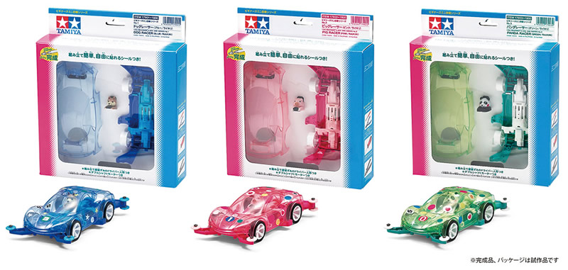 ドッグレーサー(ブルー/ライキリ)、ピッグレーサー(ピンク/ライキリ)、パンダレーサー(グリーン/ライキリ)